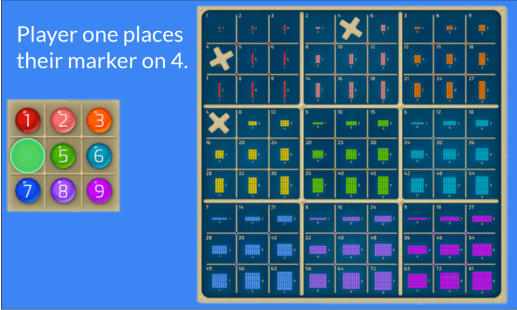 Multi (Joyful Math) was a very popular game with students, teachers and researchers. It is a mega tic tac toe board, where students try to win squares (and block opponents) by picking factors and covering up all the products on the board.