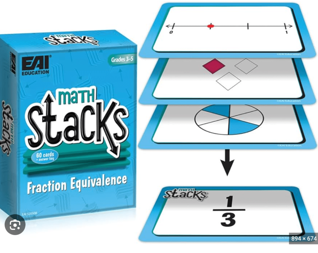 Math Stacks (EAI) was not particularly fun to play, but both students and teachers described this as an effective game to help students learn fractional equivalence. The representations supported learning.
